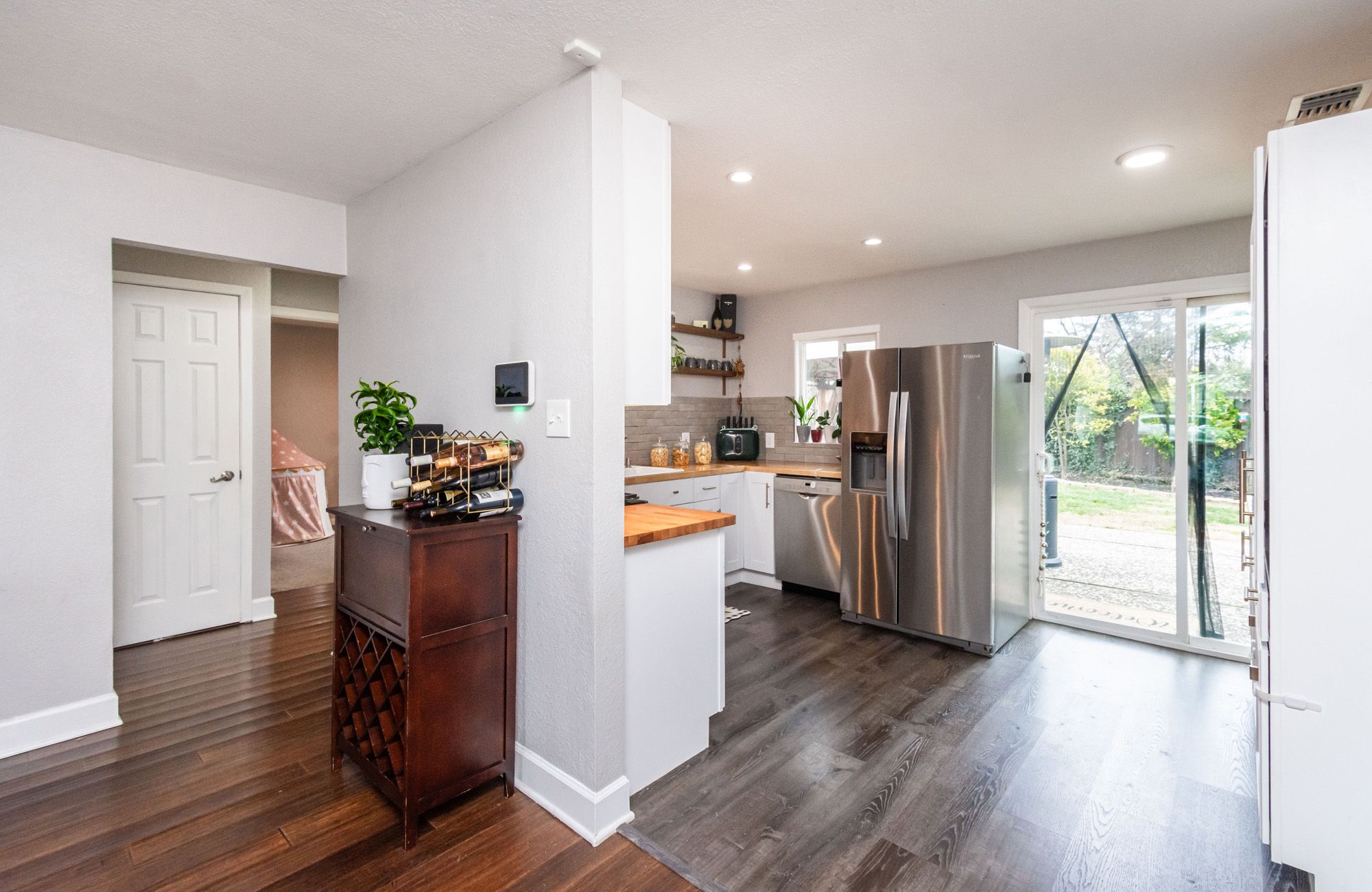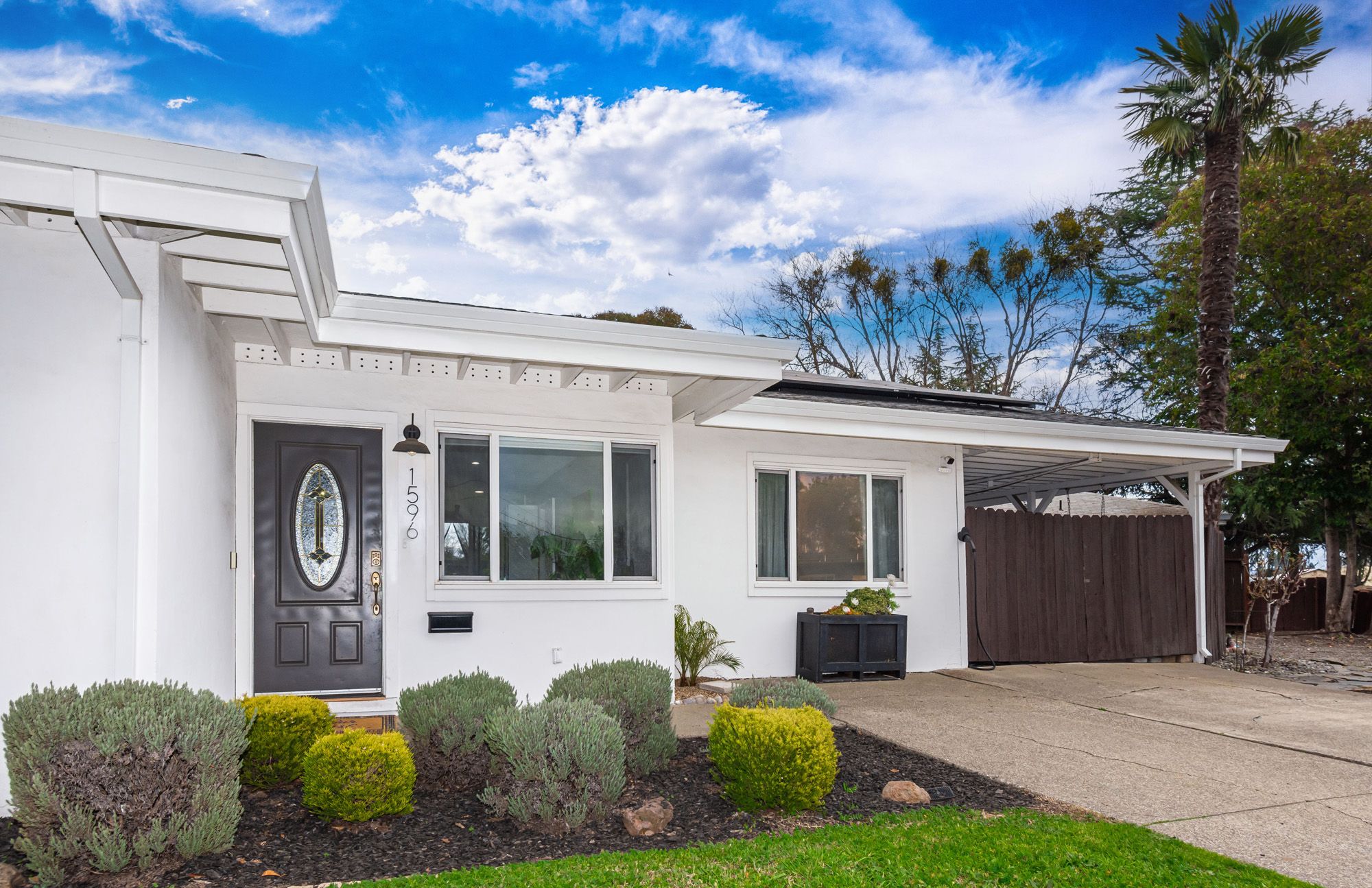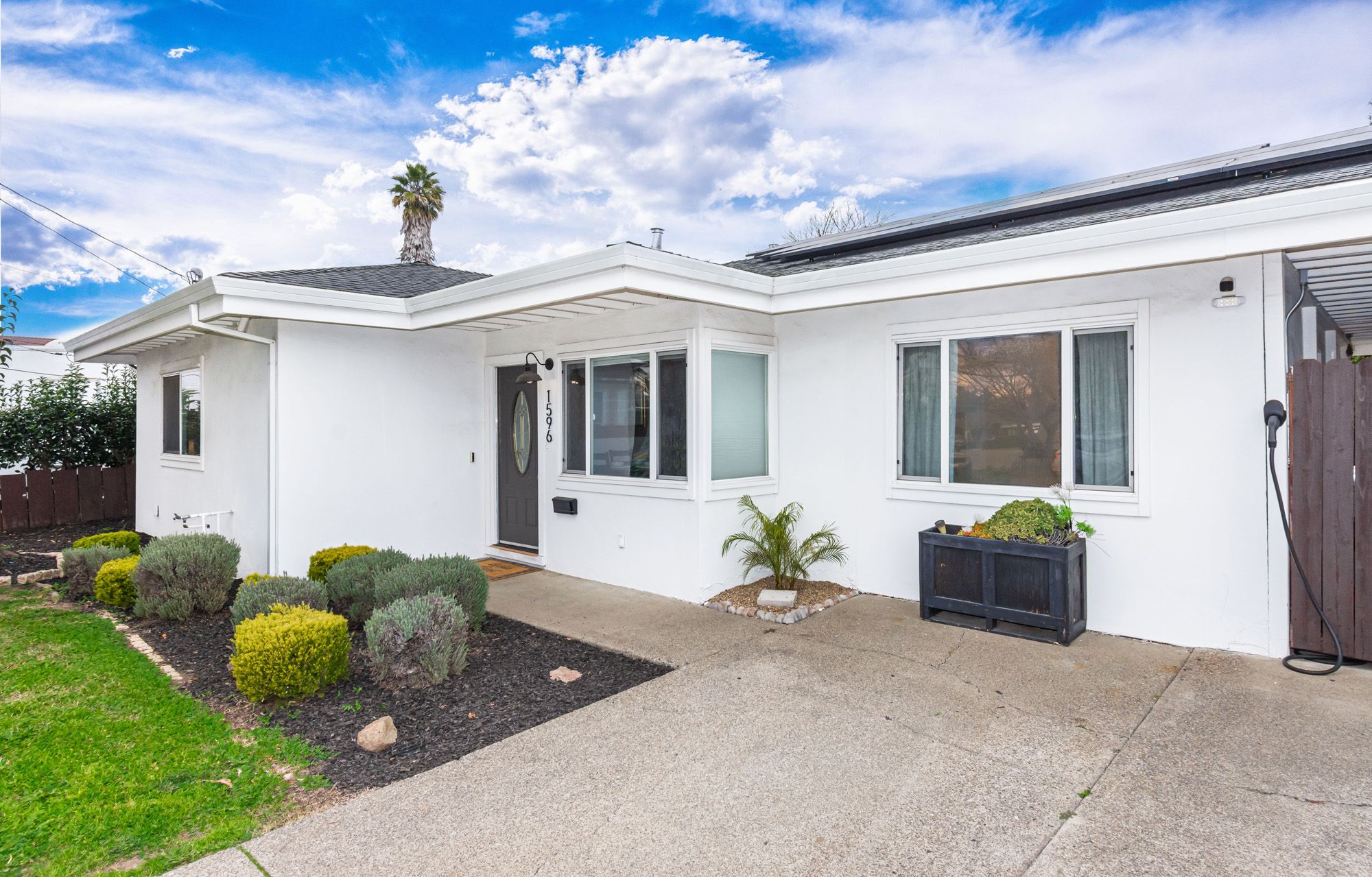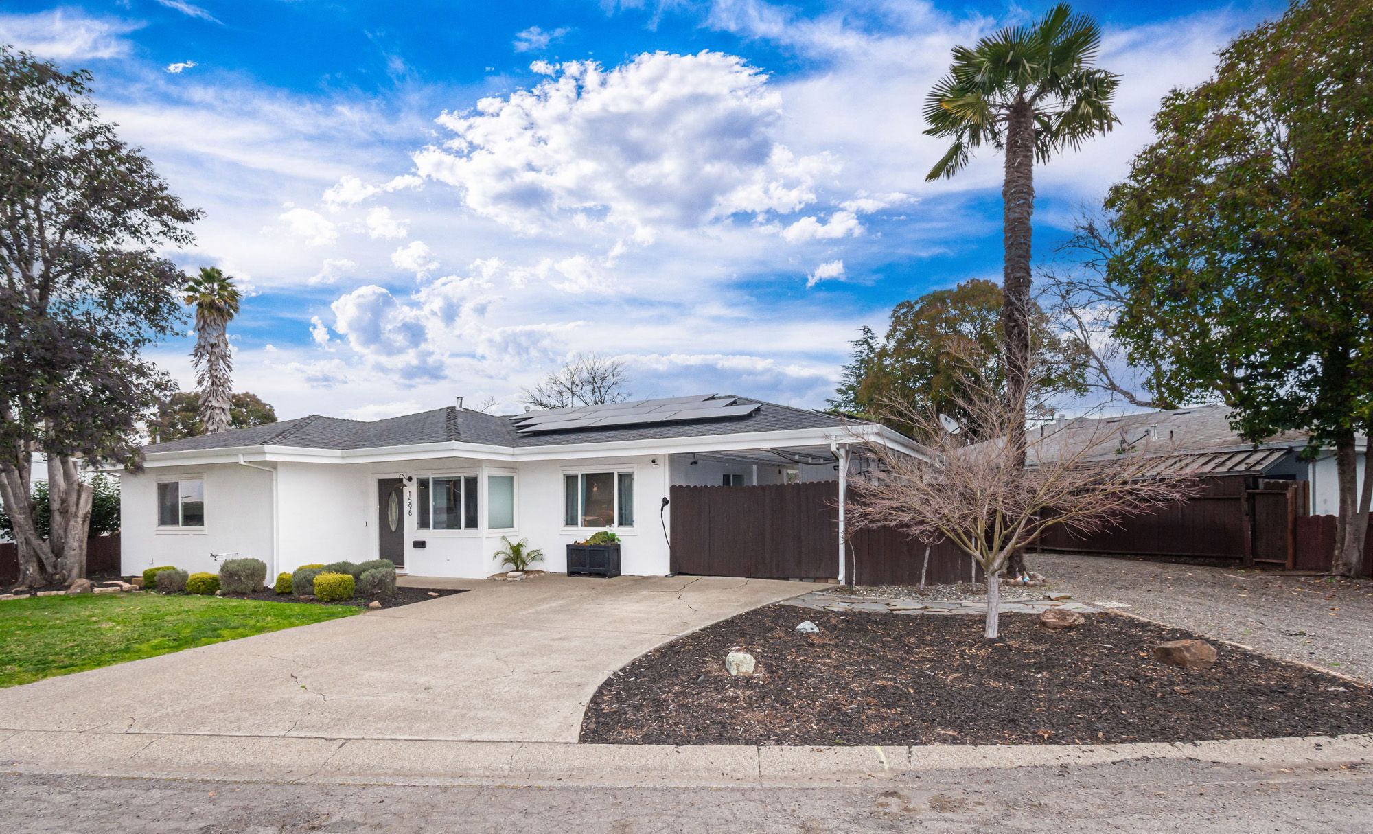 Charming and contemporary, this single level home is centrally located and features 3 bedrooms and 2 bathrooms. The quaint residence showcases a beautifully updated kitchen complete with butcher block countertops and modern stainless steel appliances. The large family room provides the convenience of indoor laundry and cozy lounge time. The primary bedroom includes a private en-suite bathroom for added comfort. Perfect for outdoor entertaining, the spacious backyard is adorned with string lights, and the large lot provides ample space for RV Parking. Equipped with owned solar, a new HVAC system, water heater, and EV Charger, this energy efficient home blends both sustainability with modern living!