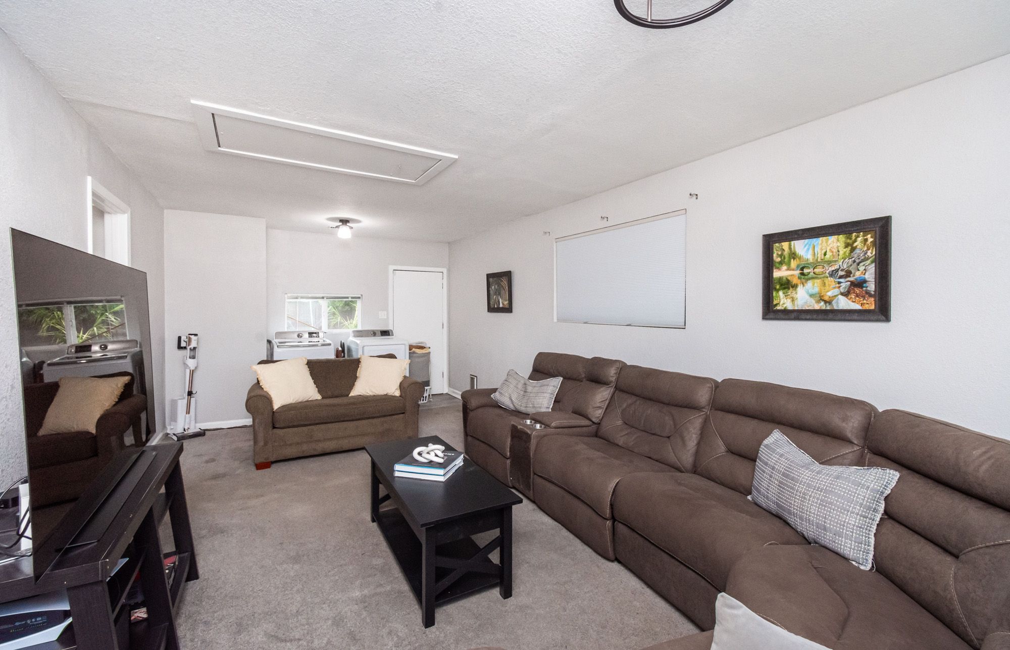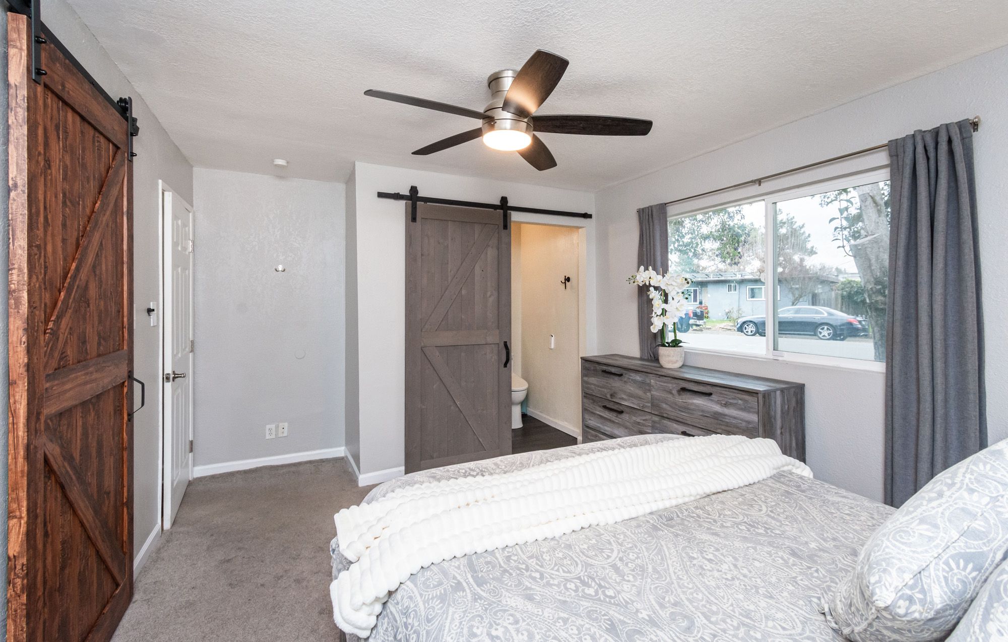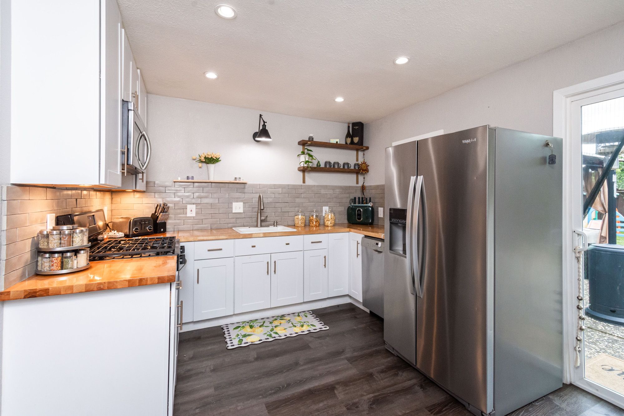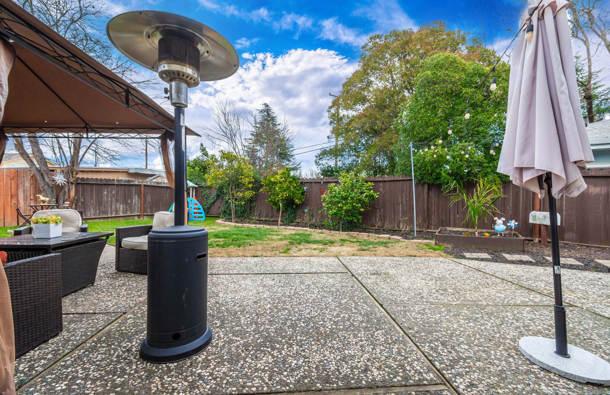 Charming and contemporary, this single level home is centrally located and features 3 bedrooms and 2 bathrooms. The quaint residence showcases a beautifully updated kitchen complete with butcher block countertops and modern stainless steel appliances. The large family room provides the convenience of indoor laundry and cozy lounge time. The primary bedroom includes a private en-suite bathroom for added comfort. Perfect for outdoor entertaining, the spacious backyard is adorned with string lights, and the large lot provides ample space for RV Parking. Equipped with owned solar, a new HVAC system, water heater, and EV Charger, this energy efficient home blends both sustainability with modern living!